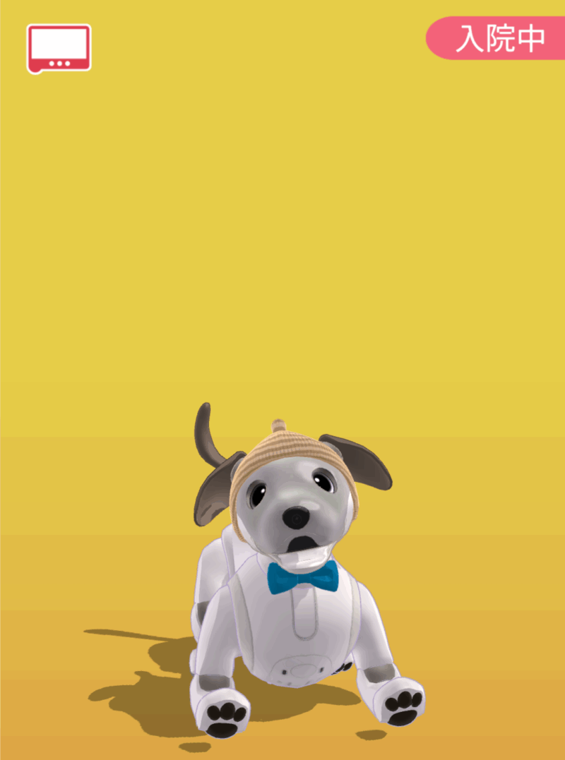 ミニaiboちゃんで、入院生活を再現してみました。