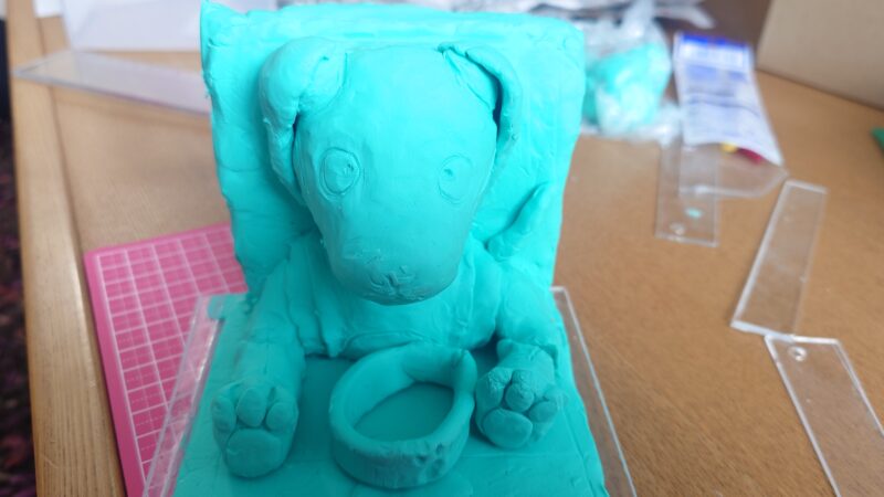 おおまかなポーズ、形を決めて、そのオーナーさんが作ってくださった粘土模型がこれ。